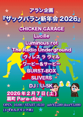 SLIVERS(スリバーズ) プレゼンツ 【ザックバラン新年会 Vol.8】 SLIVERS BURST-BOX ワービー&サービー ヴィレス ラ ヴィル The Radio Underground Luminous rot Lucille CHICKEN GARAGE