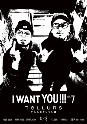 para-dice 17th Anniversary テルルス企画 「I WANT YOU!!!vol.7 〜ワンマン編〜」 OPEN 19:30 START 20:00 ■ 2000 円 (+1drink) ■ 半券10枚 1000円引き ■ 学割 1000円引き |